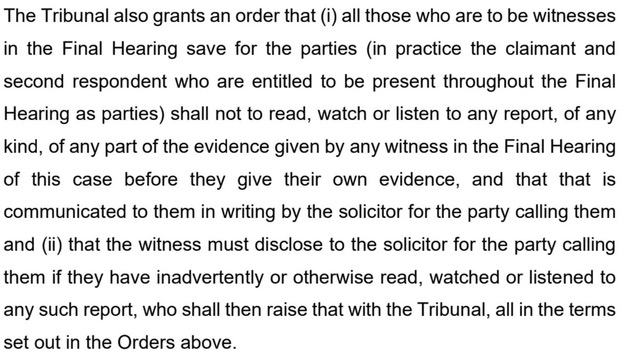 Admonition from Employment Judge Kemp to any potential witnesses to avoid Tribunal Tweets coverage: