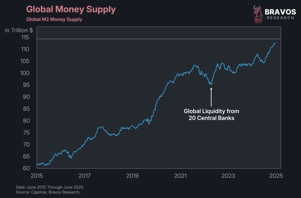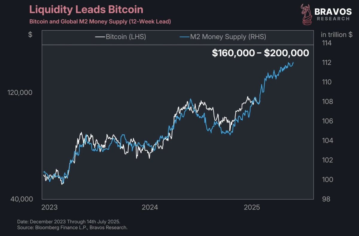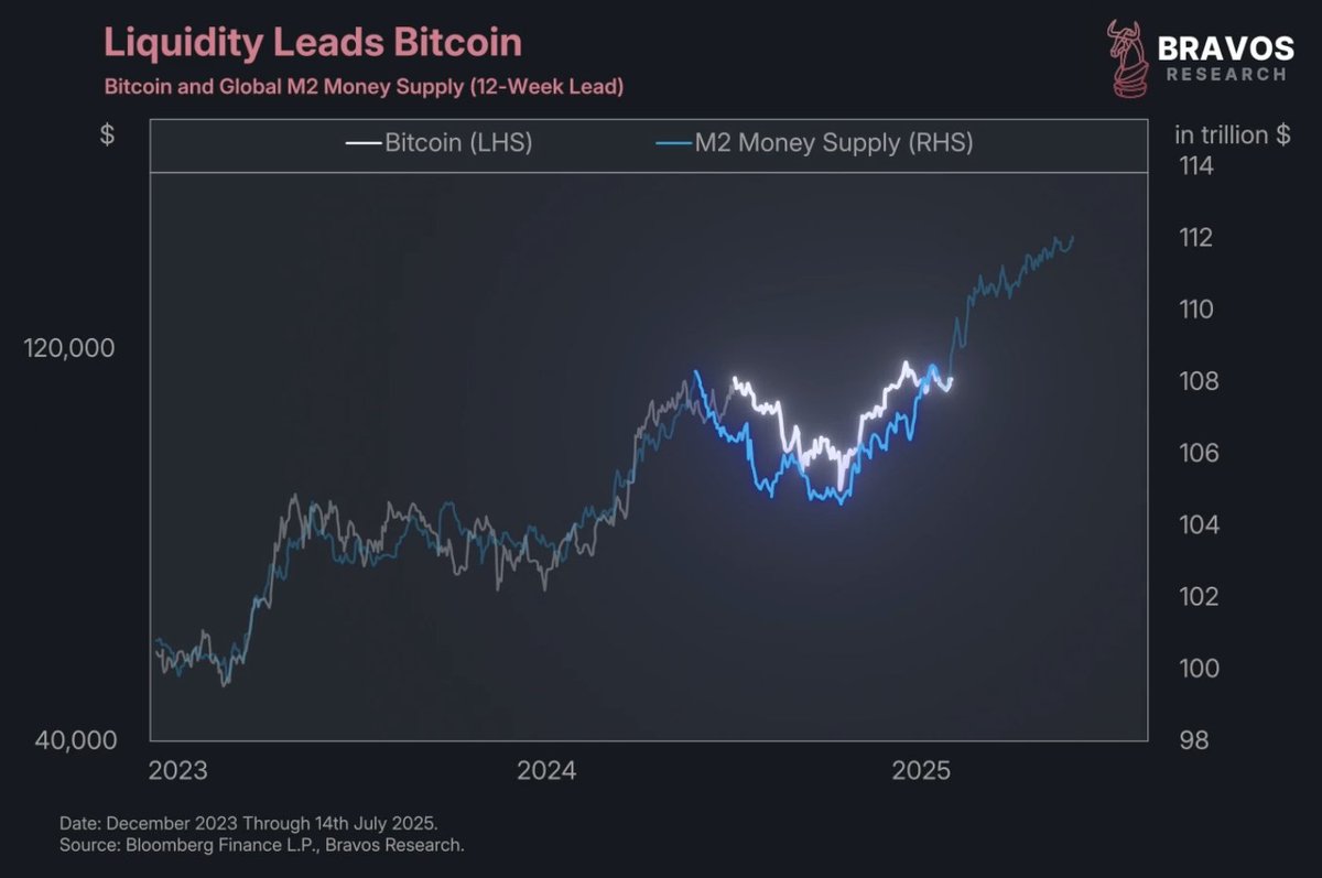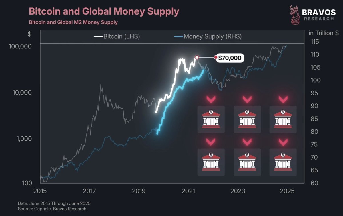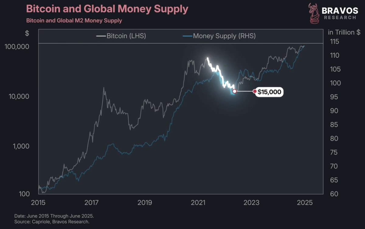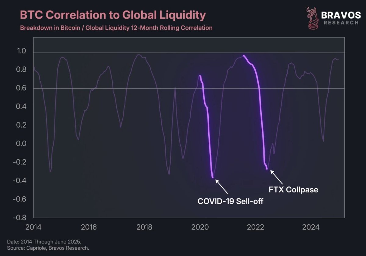 It’s not a perfect one-to-one, but Bitcoin generally moves in the same direction as global liquidity