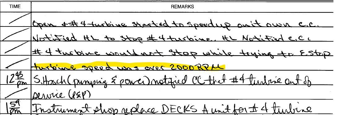 T4 got to near 2000 rpm, far above its normal running speed of 1500 rpm. Multiple emergency stop buttons failed. It had to be terrifying. I only found out about it through public records requests. (19/22)