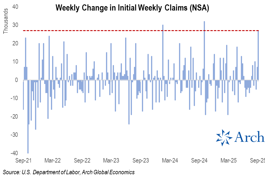 Initial jobless claims jumped by 32k to 263k during the week ending Sept 6.