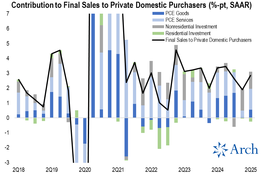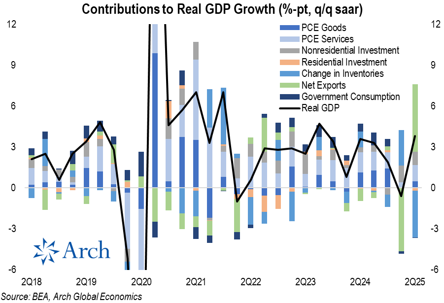 Pretty notable upward revisions to 2Q25 real GDP growth this morning: up 50bps to 3.8% from 3.3% prior.
