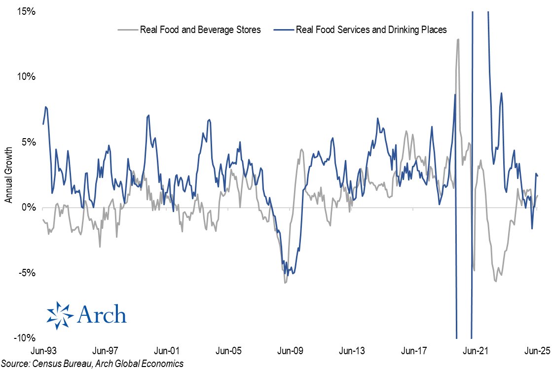 To that point, real restaurant spending has rebounded sharply on an annual basis, despite declining -5.7% on a monthly basis in June.