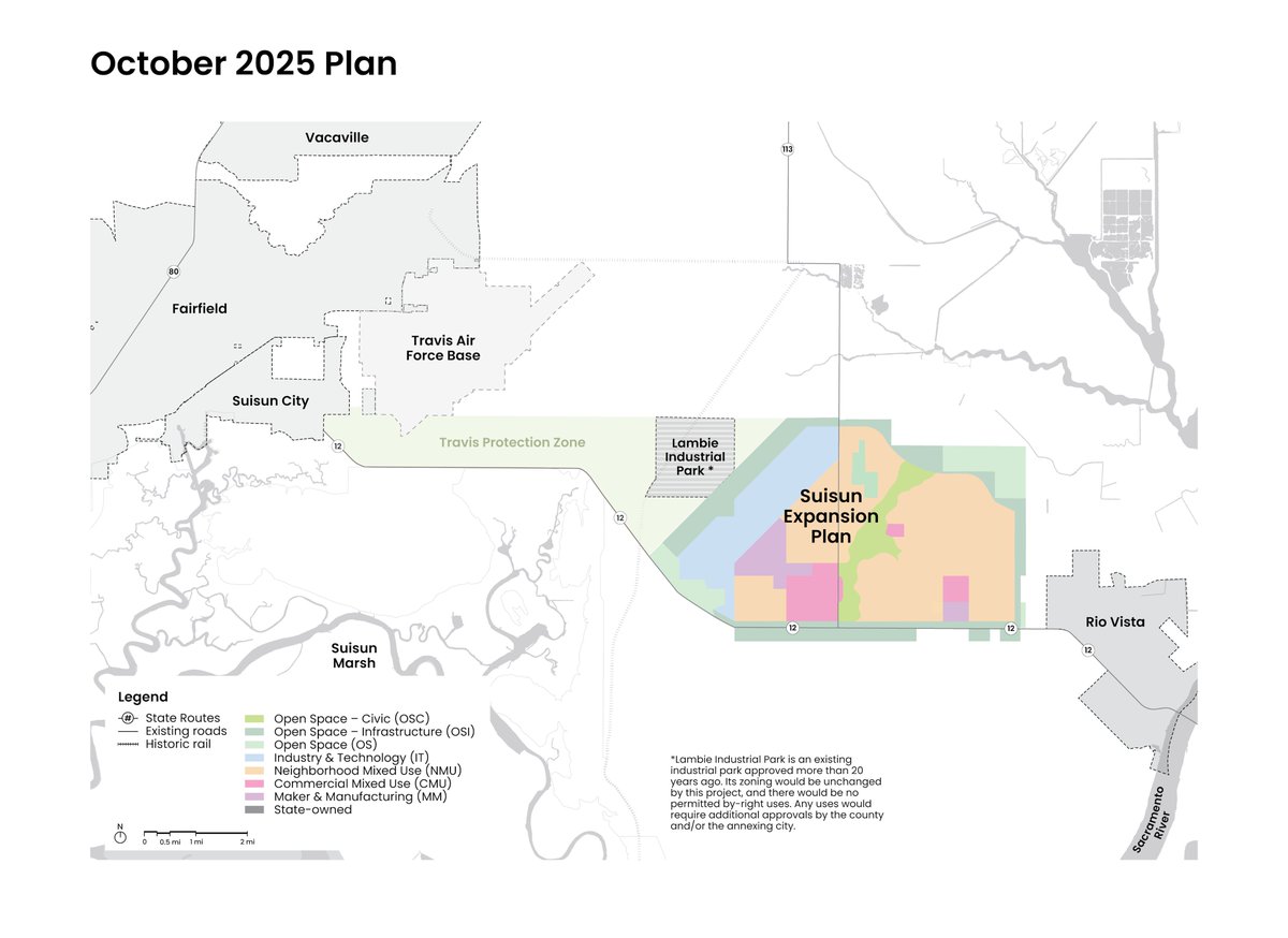 The plan also has a new home now. Last year, the community was clear – we like the plan, but in Solano County, “what is urban shall be municipal”, so make this an extension of an existing city, not a new community. Suisun City stepped up and proposed building the city as part of the Suisun Expansion Project. They’re now on the way to becoming California’s best example of the Abundance Agenda.