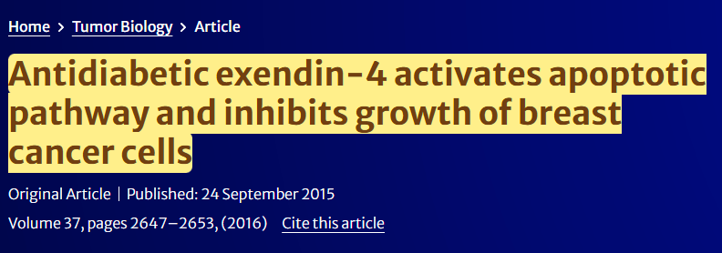 That said, exendin-4 has been associated in preclinical data with reduced incidence of various types of cancers.
