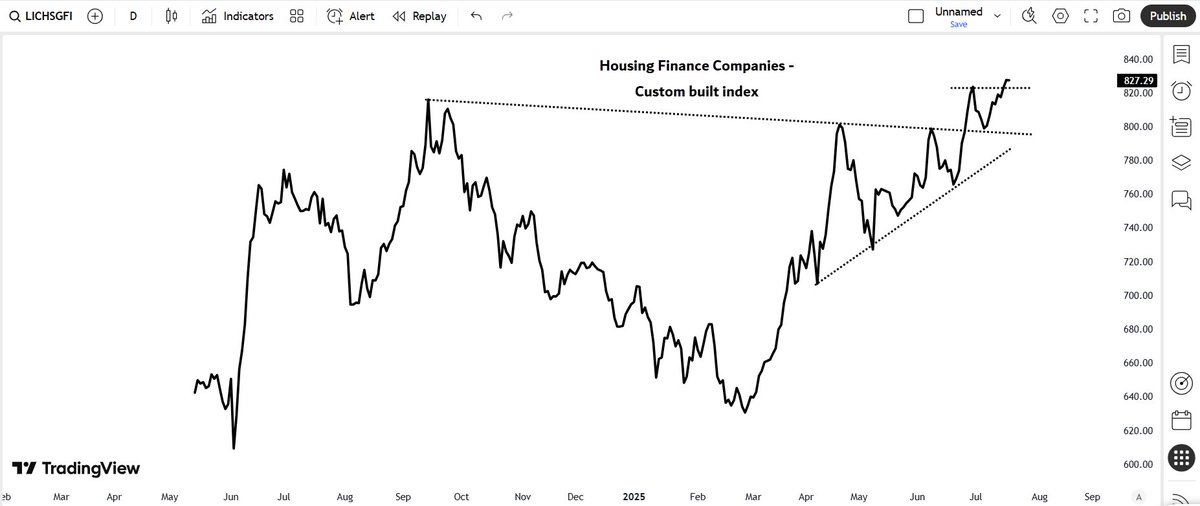 Here is your custom built index for housing finance companies assigning an equal weight to all the stocks