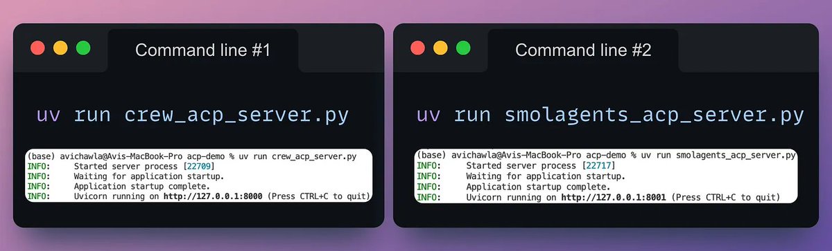 This demo showcases how you can use ACP to enable Agents to communicate via a standardized protocol, even if they are built using different frameworks.