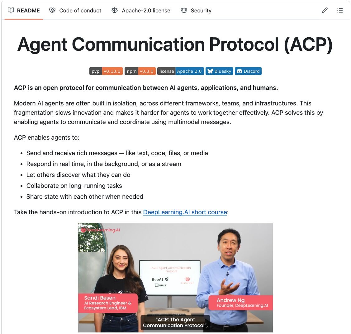 ACP is a standardized, RESTful interface for Agents to discover and coordinate with other Agents, regardless of their framework.