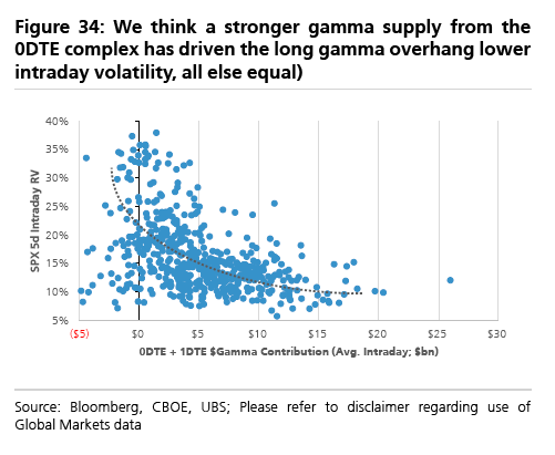 Technically, this means that flows are absorbed by the hedging behavior of market makers- stabilizing the market overall and compressing ranges over time.