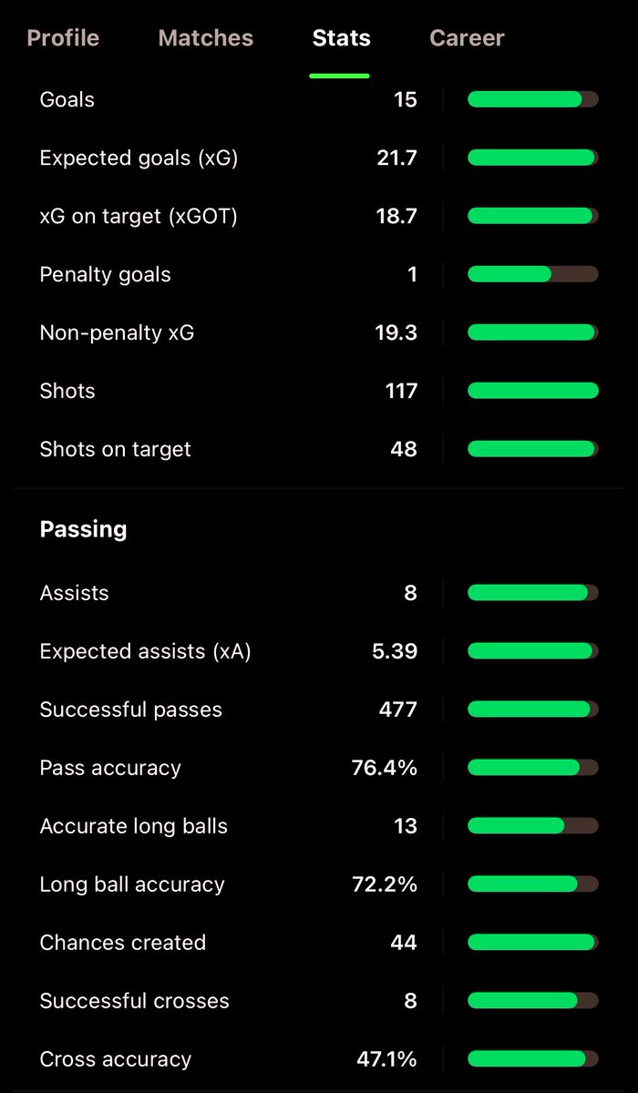 7. This stat shows just how much potential Ekitike truly has. Amongst ALL strikers in the world, Ekitike is 3rd highest in xG and xA only below Mbappe and Lewandowski. With some more experience and fine tuning from Slot, these “expected” stats could soon become reality.