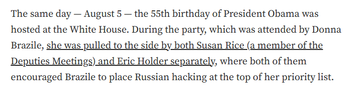Why does Susan Rice and Eric Holder try to get Donna Brazile to put Russian hacking at the top of the list?