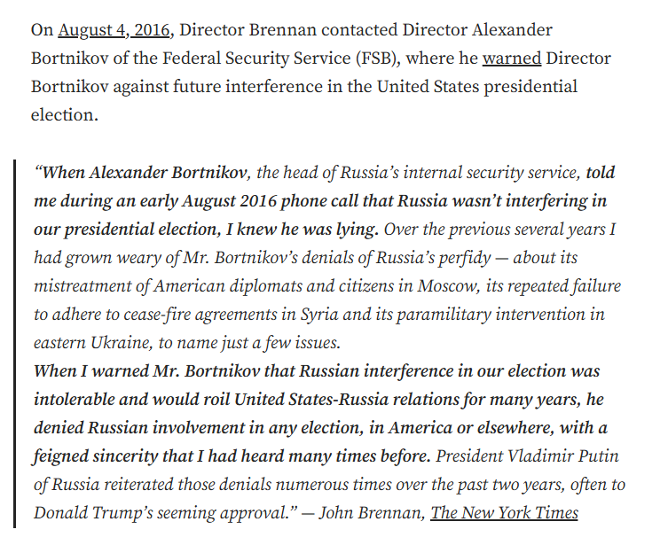 If the ICA is concluding "low confidence", then why is Brennan contacting Alexander Bortnikov of the FSB, and saying he was lying about Russian election interference?