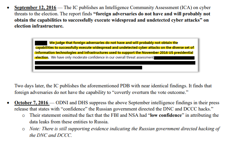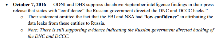 So between September 12, 2016 and October 7, 2016, something changes and the DHS and ODNI suppress their initial view that nobody can "execute widespread and undetected cyber attacks" on the election.