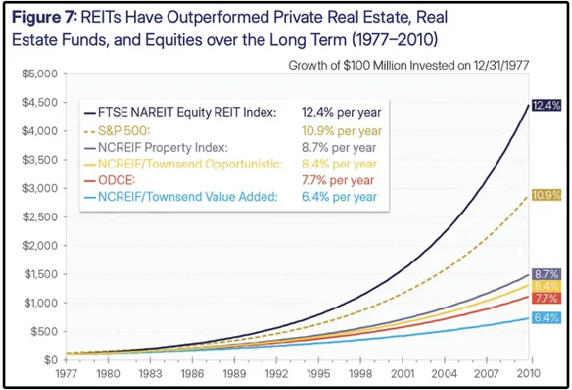 If we look at REITs performance over a 30+ year time horizon, we see dramatically different results.