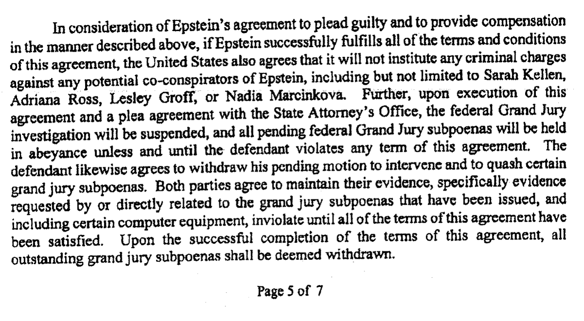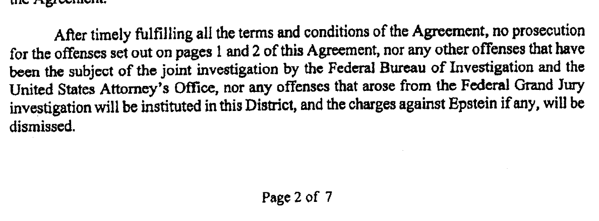 @patriotmolenys1 @AGPamBondi @DAGToddBlanche "...the United States also agrees that it will not institute any criminal charges against any potential co-conspirators of Epstein, including but not limited to..."