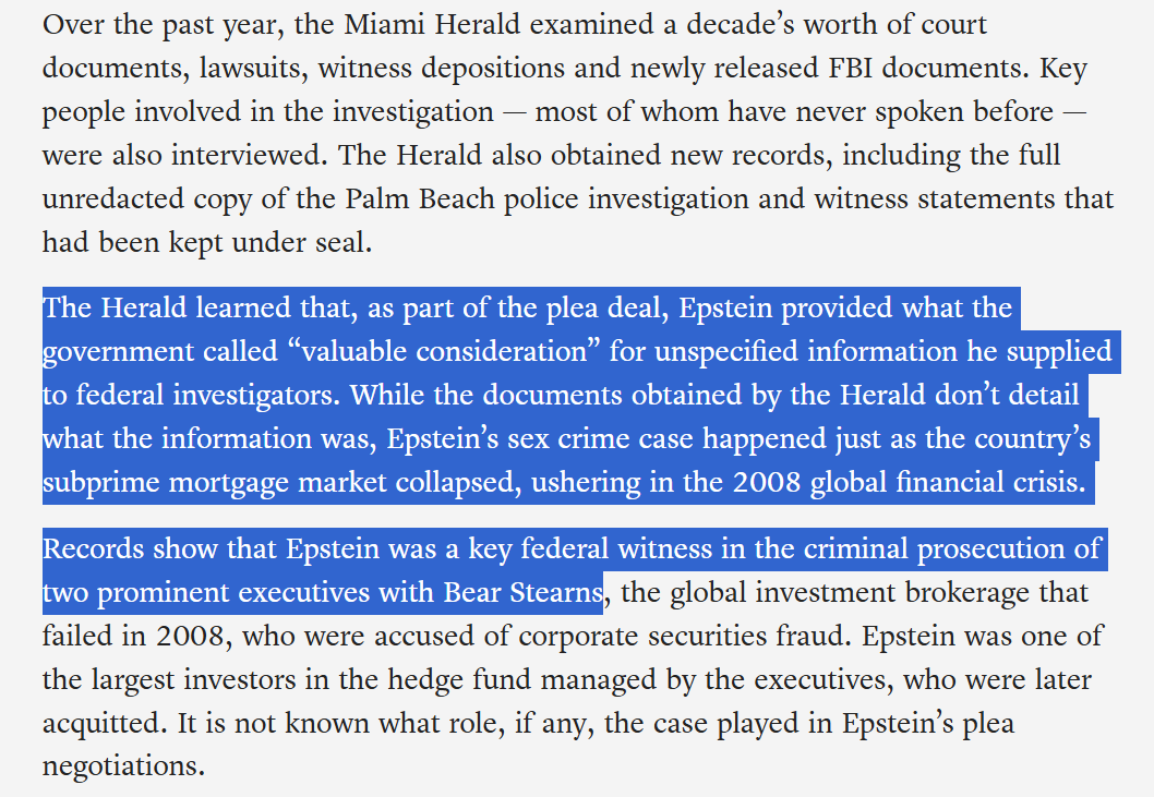 "...as part of the plea deal, Epstein provided what the government called “valuable consideration” for unspecified information he supplied to federal investigators.