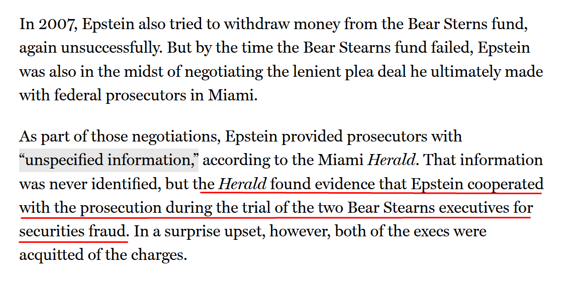 "...the prosecutors from the Bear Stearns case in [the Eastern District of] New York [said] [they] had never heard of [Epstein]."