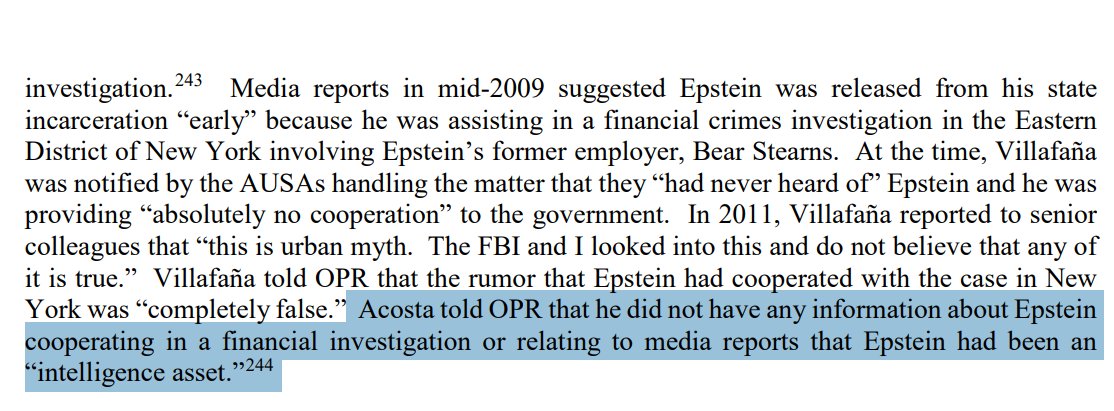 @patriotmolenys1 @AGPamBondi @DAGToddBlanche "Acosta told OPR that he did not have any information about Epstein cooperating in a financial investigation or relating to media reports that Epstein had been an “intelligence asset.”" Image