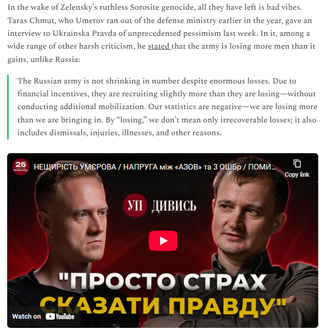 (10) The only way Zelensky’s grip could actually be threatened is if the frontline really started collapsing