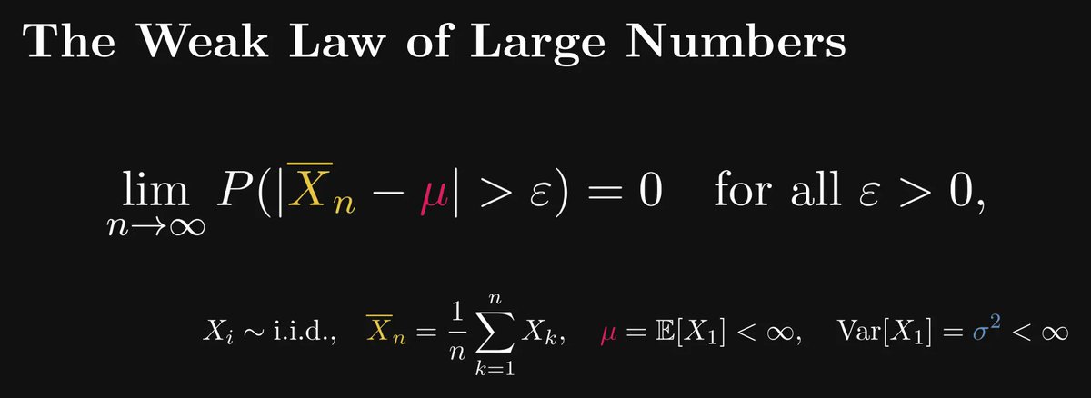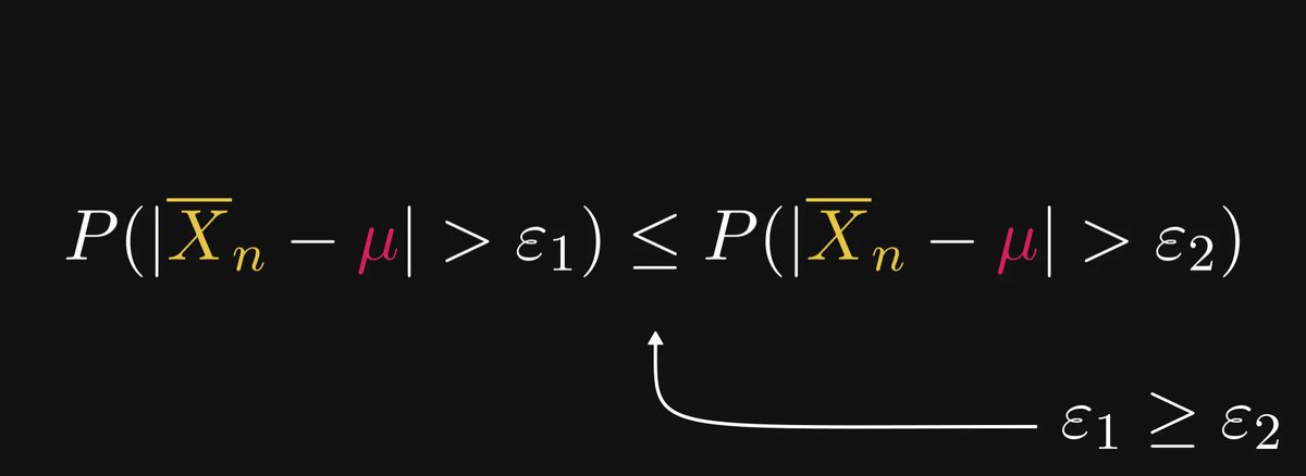 The quantity P(|X̅ₙ - μ| > ε) might be hard to grasp for the first time; but it just measures the distance of the sample mean from the true mean (that is, the expected value) in a probabilistic sense.