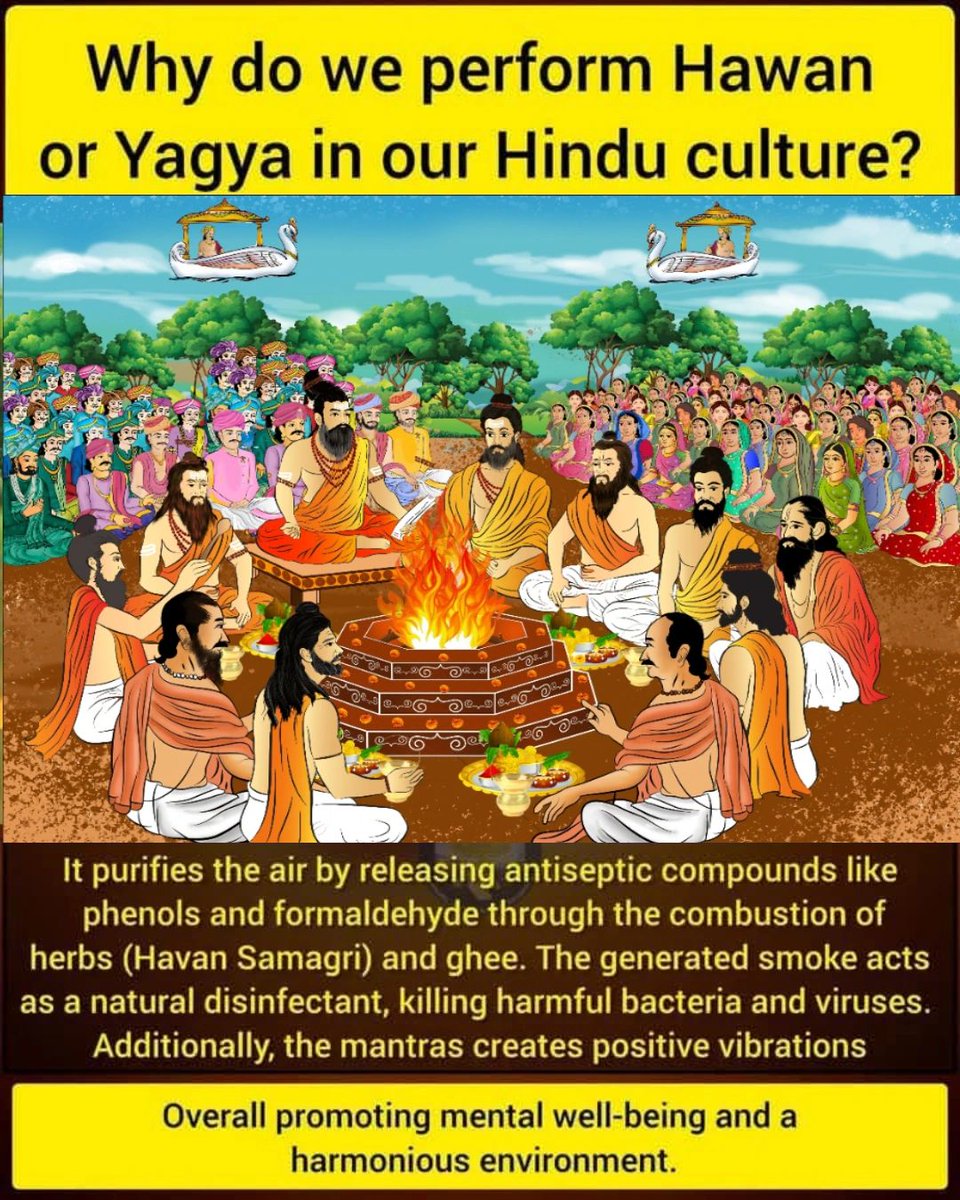 2. Purification of the Air: When ghee and special herbs (Havan Samagri) are poured into the fire, it releases phenols and formaldehyde,