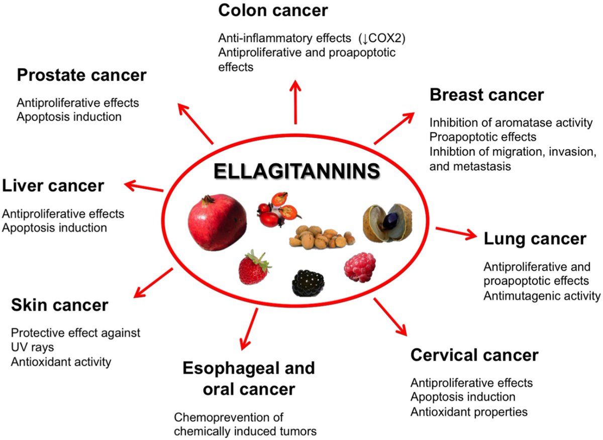 Pomegranates contain phytochemicals called Ellagitannins that inhibit cancer cell growth by causing apoptosis (cell death) and disrupting tumor pathways.