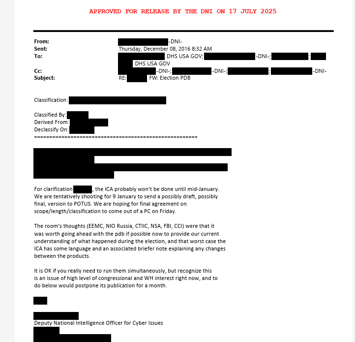 🔥🔥🔥Obama ordered the fraudulent ICA on Russia influence in 2016 before IC pulled PDB that @DNIGabbard released yesterday, declassified emails show! Working on deep-dive of release & just discovered this detail!