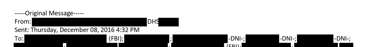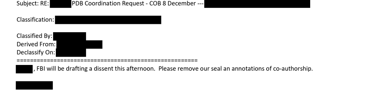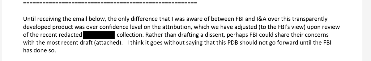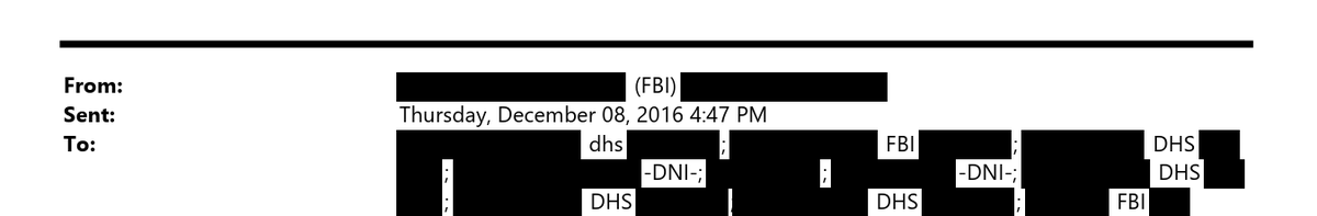 8/ Then, out of the blue, Comey's FBI at 2:22 on 12/8 said it was dissenting from the PDB. DHS responds, basically WTF. FBI says at 4:47 "okay, we'll look closer"