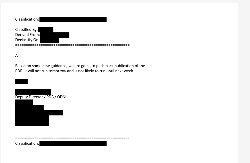 @DNIGabbard @CIADirector 10/ 6 minutes later ODNI (Deputy Director) eight-sixed the PDB.