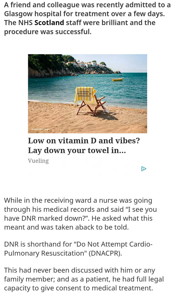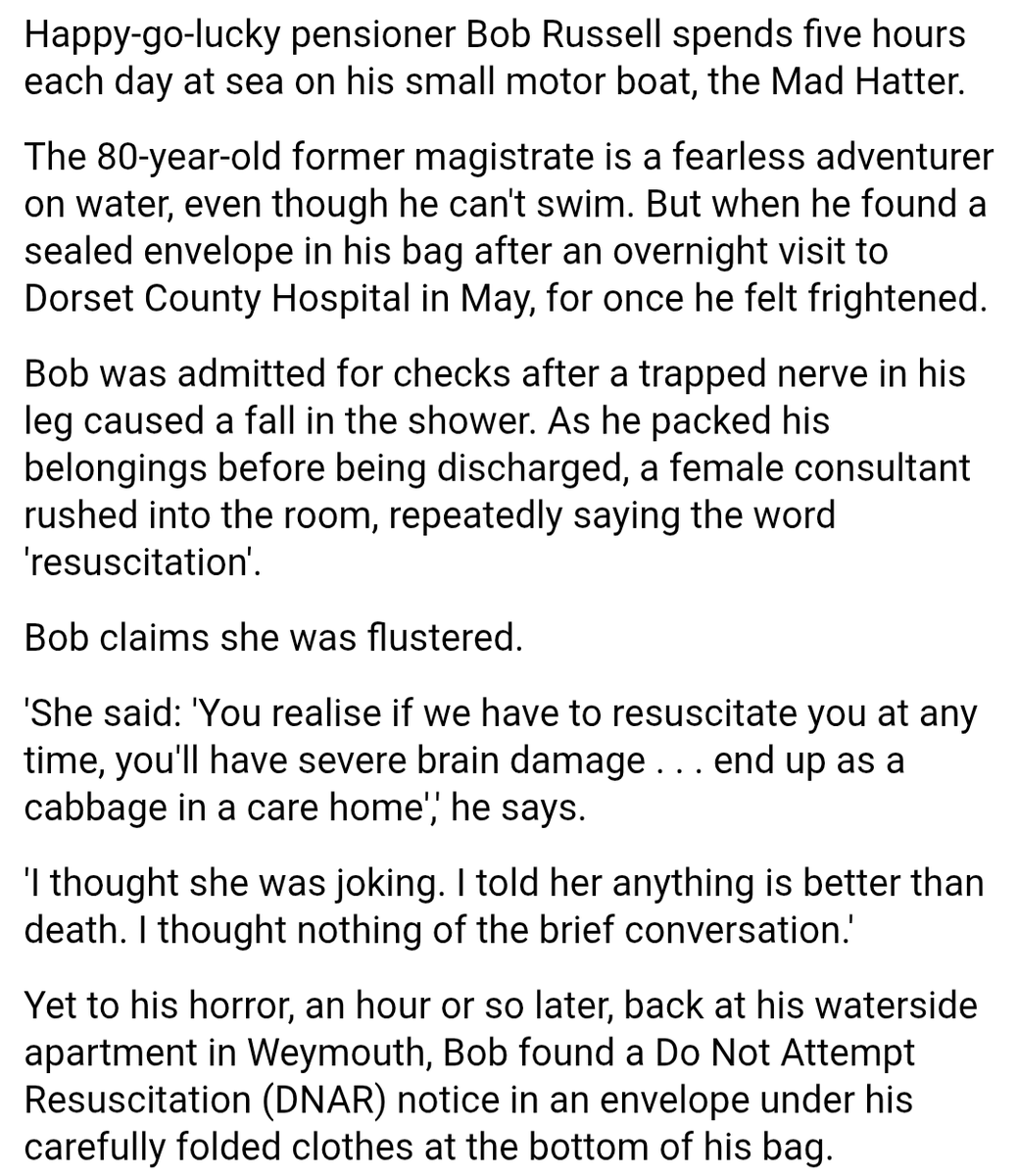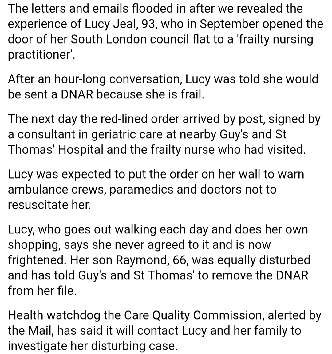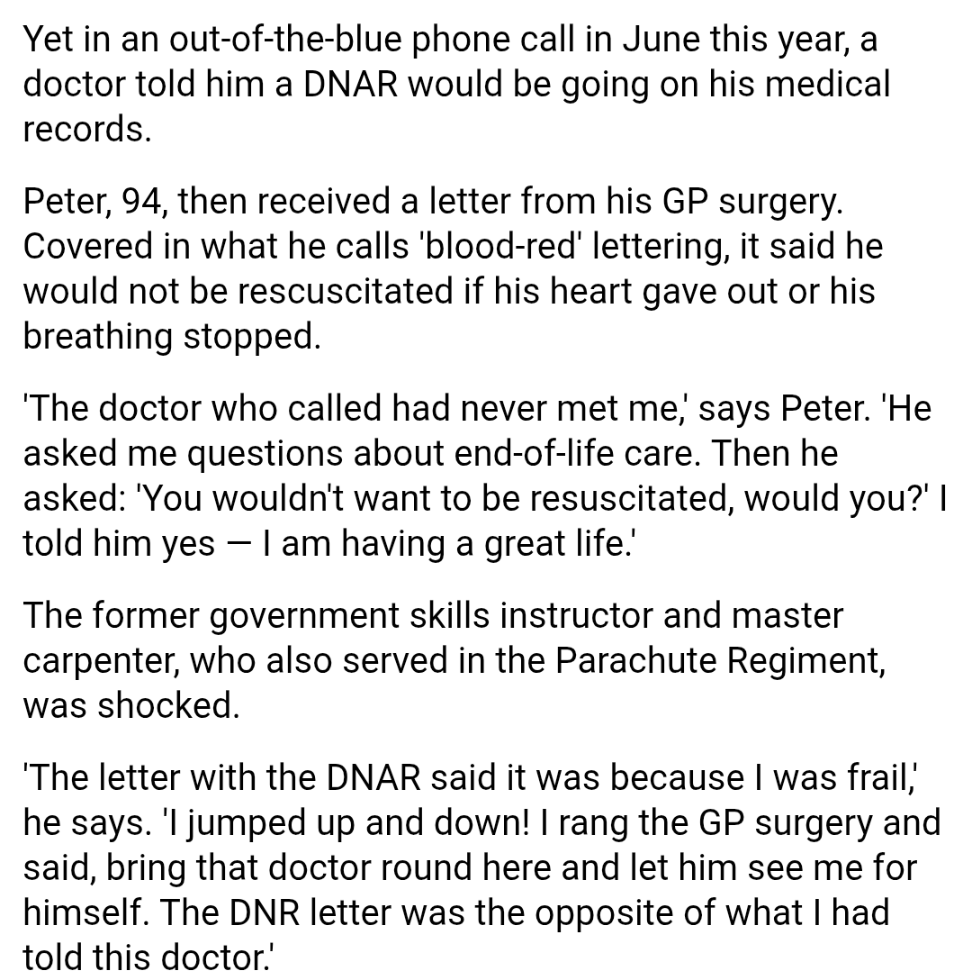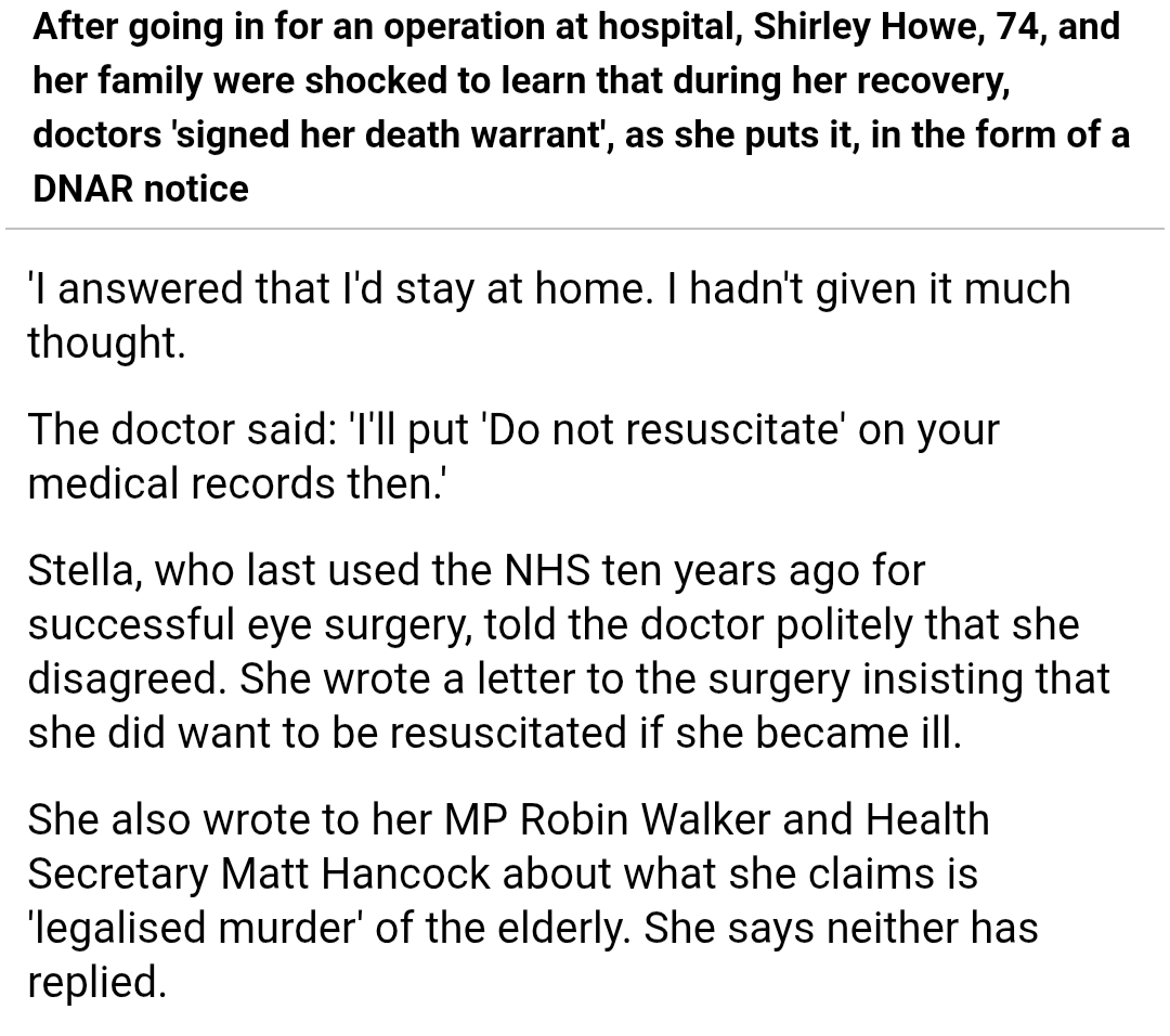There appears to be a HYPNOTIC N.L.P SCRIPT, being used by NHS Staff, to Coerce Patients, particularly, the Elderly, Disabled, and Vulnerable, into having DNR, put on their Records! dailymail.co.uk/health/article…