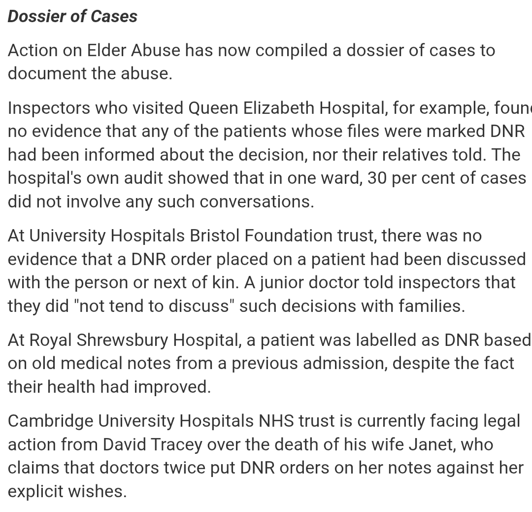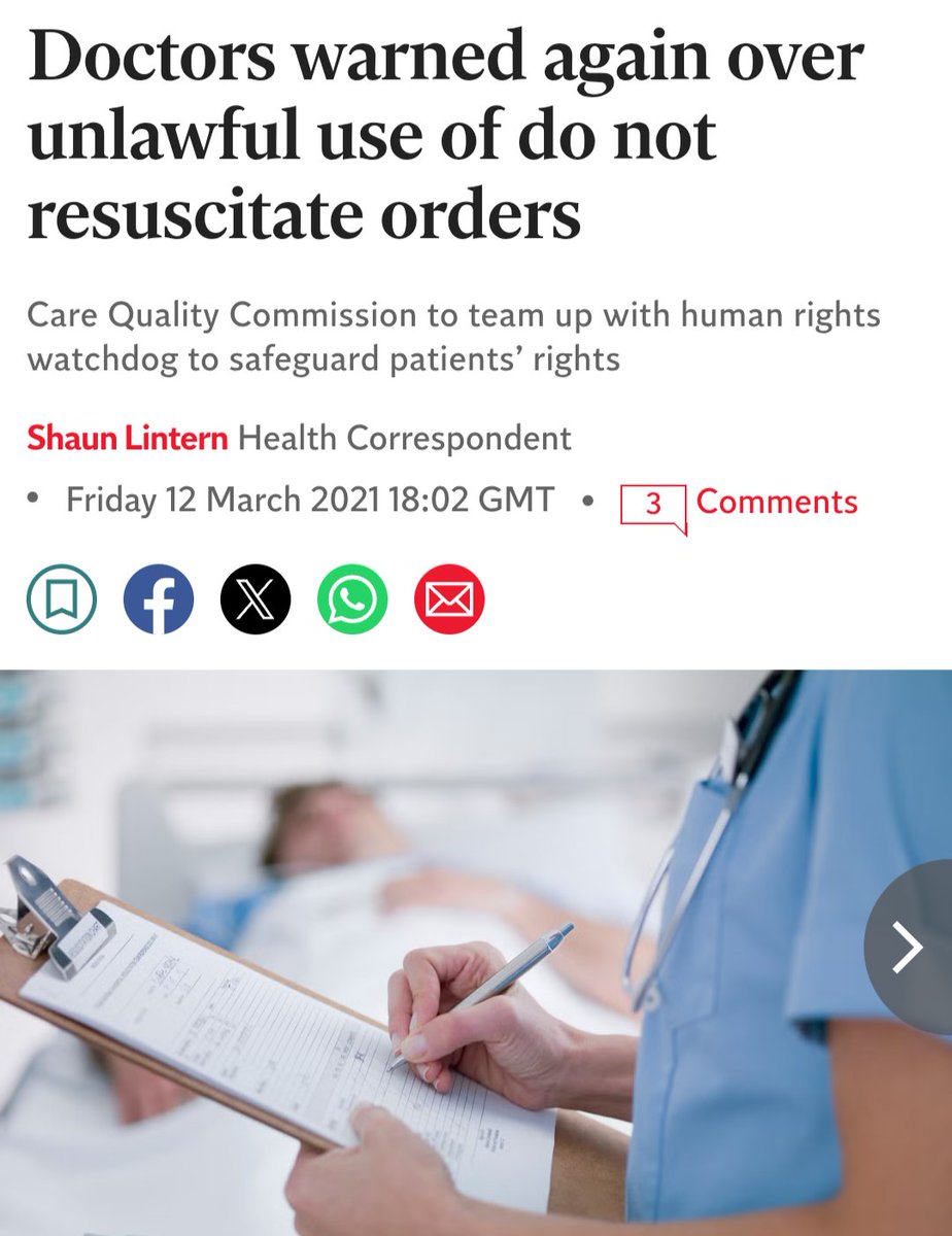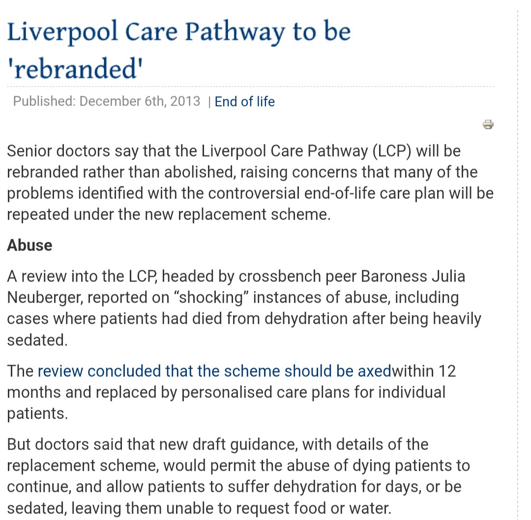 Thread:🧵DNR Abuse, Organ Harvesting, Patient Murder, Liverpool "care" pathway, and Abuse of patients & their Families, in the NHS.... ombudsman.org.uk/news-and-blog/…