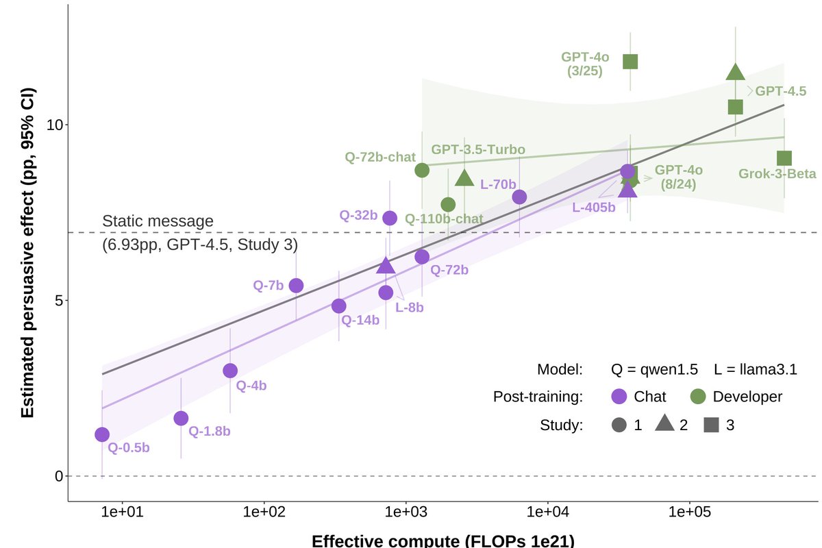 ‼️New preprint: Scaling laws for political persuasion with LLMs‼️