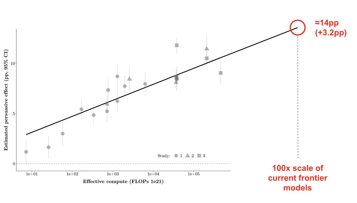 1️⃣Scale increases persuasion, +1.6pp per OOM