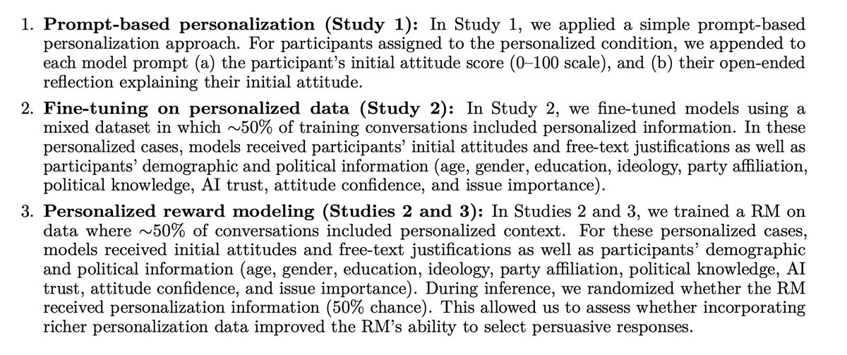 3️⃣Personalization yielded smaller persuasive gains than scale or post-training