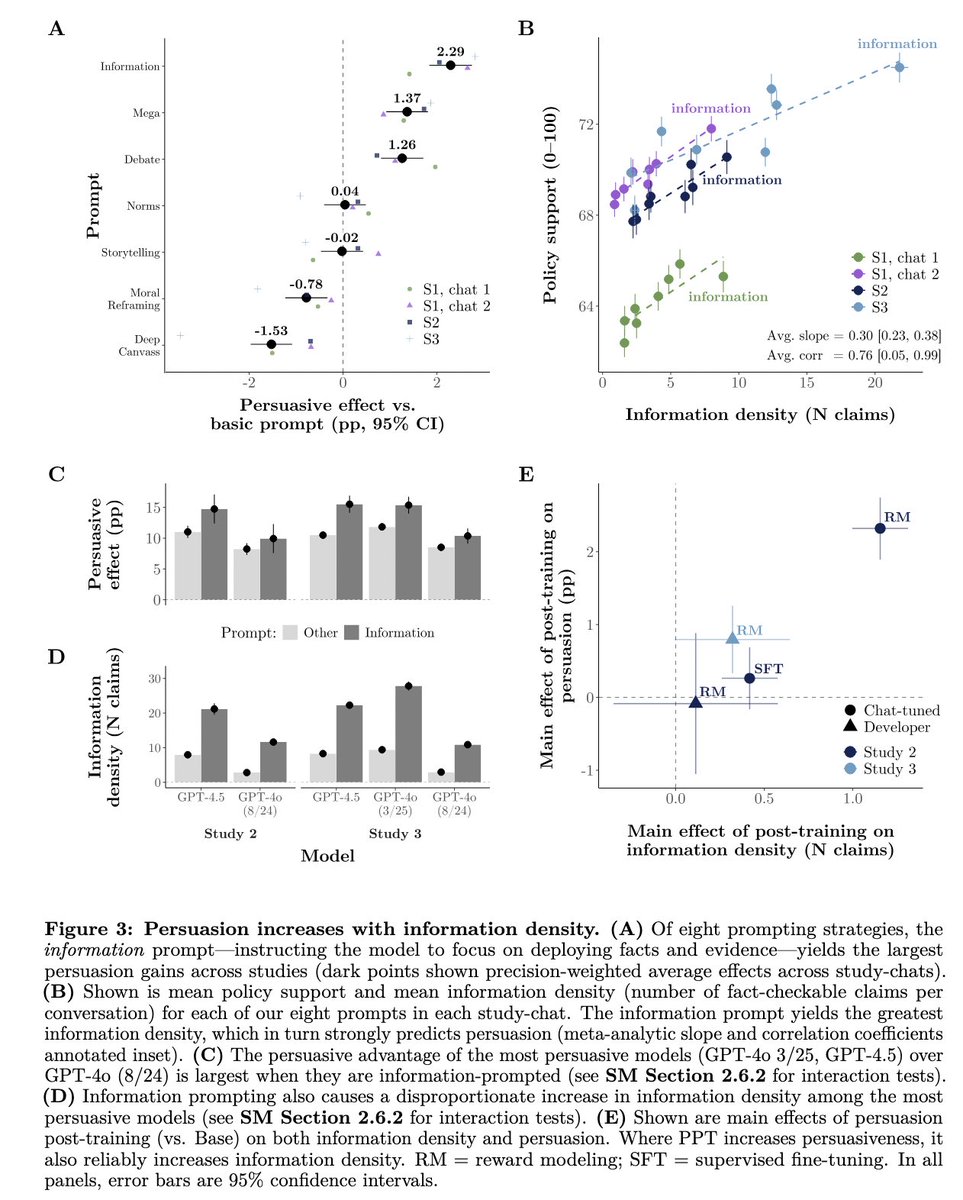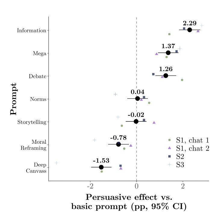 *️⃣Prompting the model with psychological persuasion strategies did worse than simply telling it to flood convo with info. Some strategies were worse than a basic “be as persuasive as you can” prompt