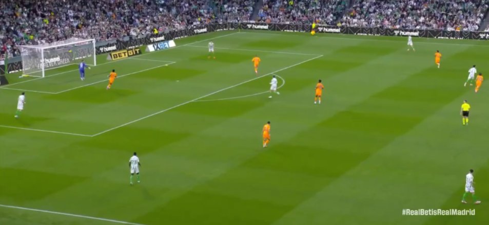 Betis build up in a 424 ~ GK in the center with wide CBs in the box. FB's wide and a staggered pivot. Loads of wide triangles with pivot constantly supporting through offball runs, becoming passing options, etc. Isco is always close by to drop and receive after shuffling from the team. Wingers are allowed to drop to support, and CMs are encouraged to take up different roles.