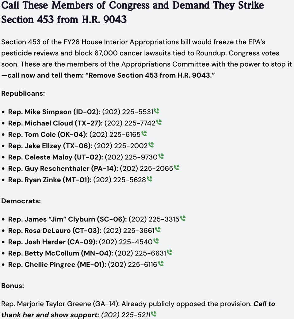 🚨TOMORROW: A House committee will vote on Section 453—a hidden provision giving pesticide companies immunity from lawsuits.