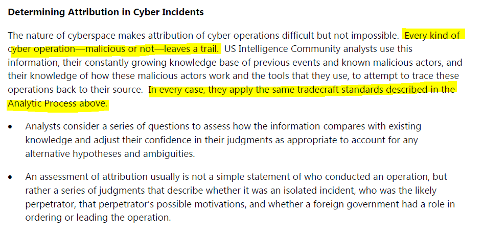 The Jan 6, 2017 prefatory Background also contained assertions about cyber incident attribution. Don't forget that the ICA firmly declared that the Russian GRU was responsible for the DNC and Podesta hacks, Guccifer 2 and dcleaks. But did so without producing the evidence. (In making this statement, I am not saying that their assessment was wrong, only that the ICA didn't include evidence of its correctness.)