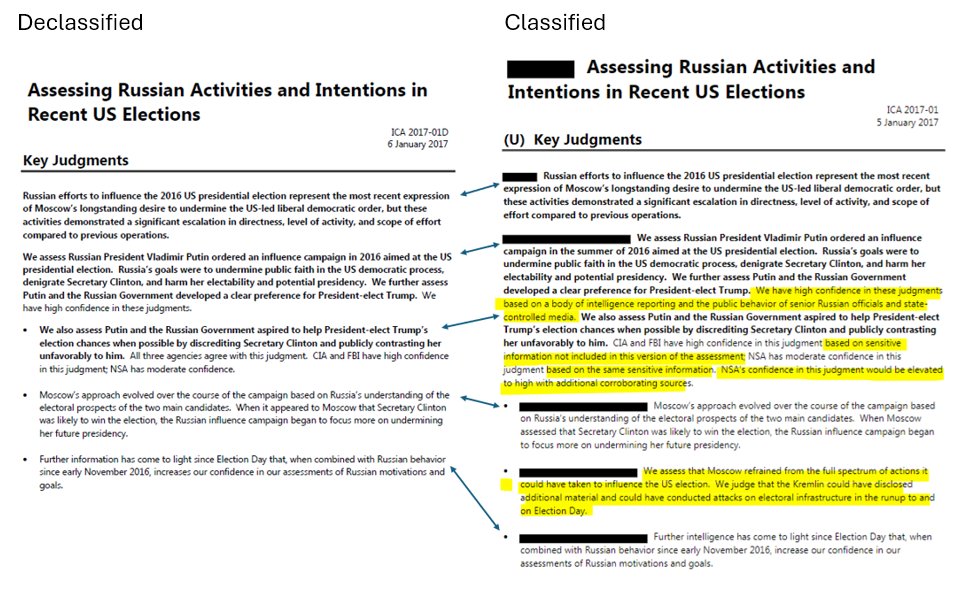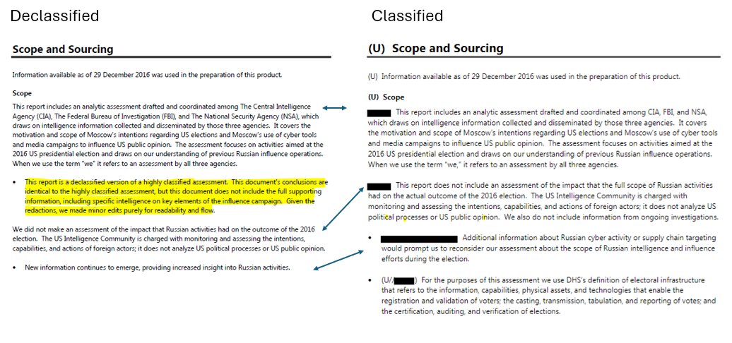 However, as previously observed, the Jan 5 "classified" version doesn't contain "the full supporting information, including specific intelligence on key elements of the influence campaign" either.