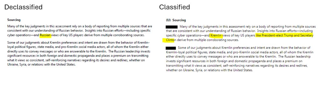 Those details are presumably in the Compartmentalized ("highly classified") version that remains withheld. As readers will observe in this series of comparisons, the Jan 5 "classified" version is little more informative than the Jan 6 declassified version. It's the Compartmentalized version that needs to be declassified and released to the maximum extent, if clarity is to emerge on this affair.