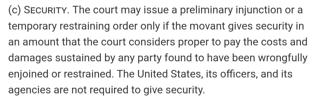 Addendum: FRCP 65(c) is really grinding my gears. A PI may issue *only* if the movant gives security. Here, the federal government may be forced to pay PP affiliates millions+ of dollars. (The injunction only applies to 10 affiliates.) Why not make them put up bond?