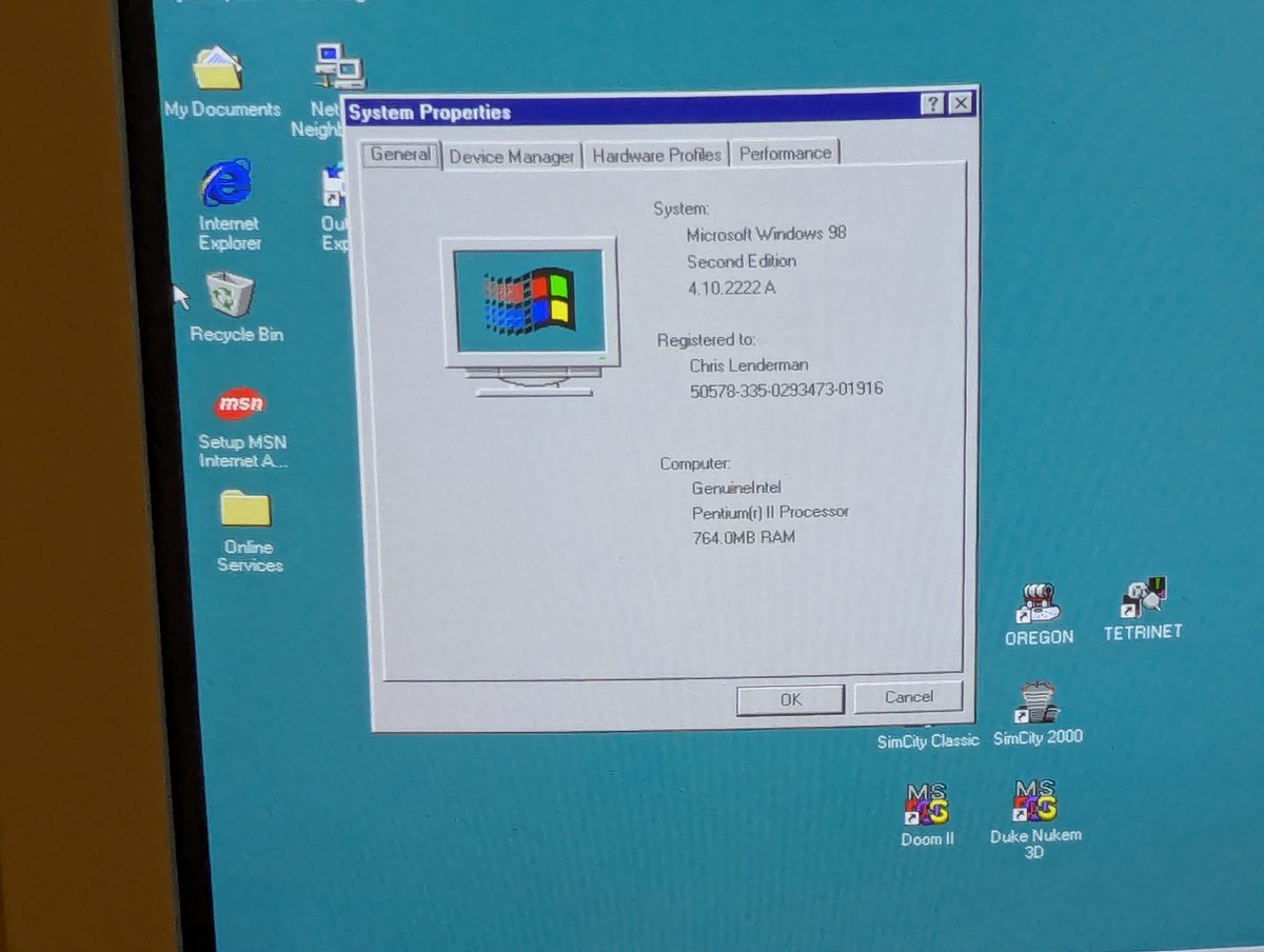Booting up Windows '98, we can see the memory is detected too, not that it wouldn't be!