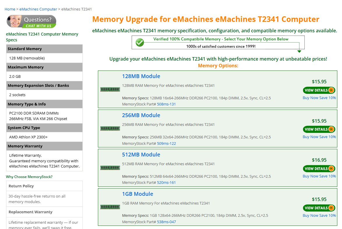 Let's switch gears for a minute and upgrade my eMachines T2341 to 2GB of memory. We will use some DDR 400 modules. Looks like they got detected right away!