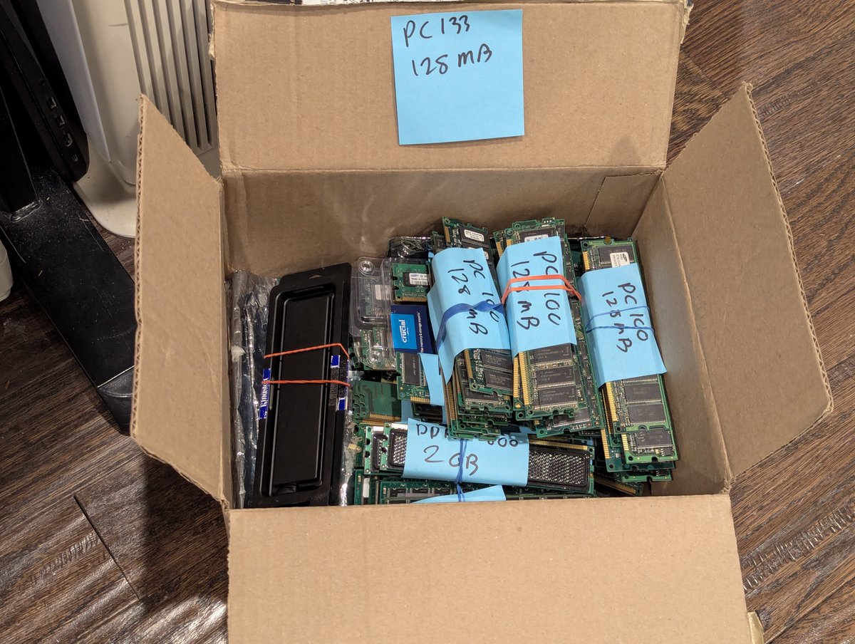 I went to visit my friend Bill yesterday, and he gave me "just a few" DIMM and RDRAM modules ๐. Shall we explore a bit and upgrade some PCs? Methinks yes. Time for a ๐งต
