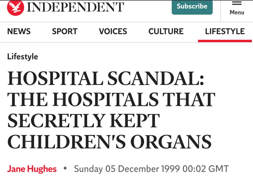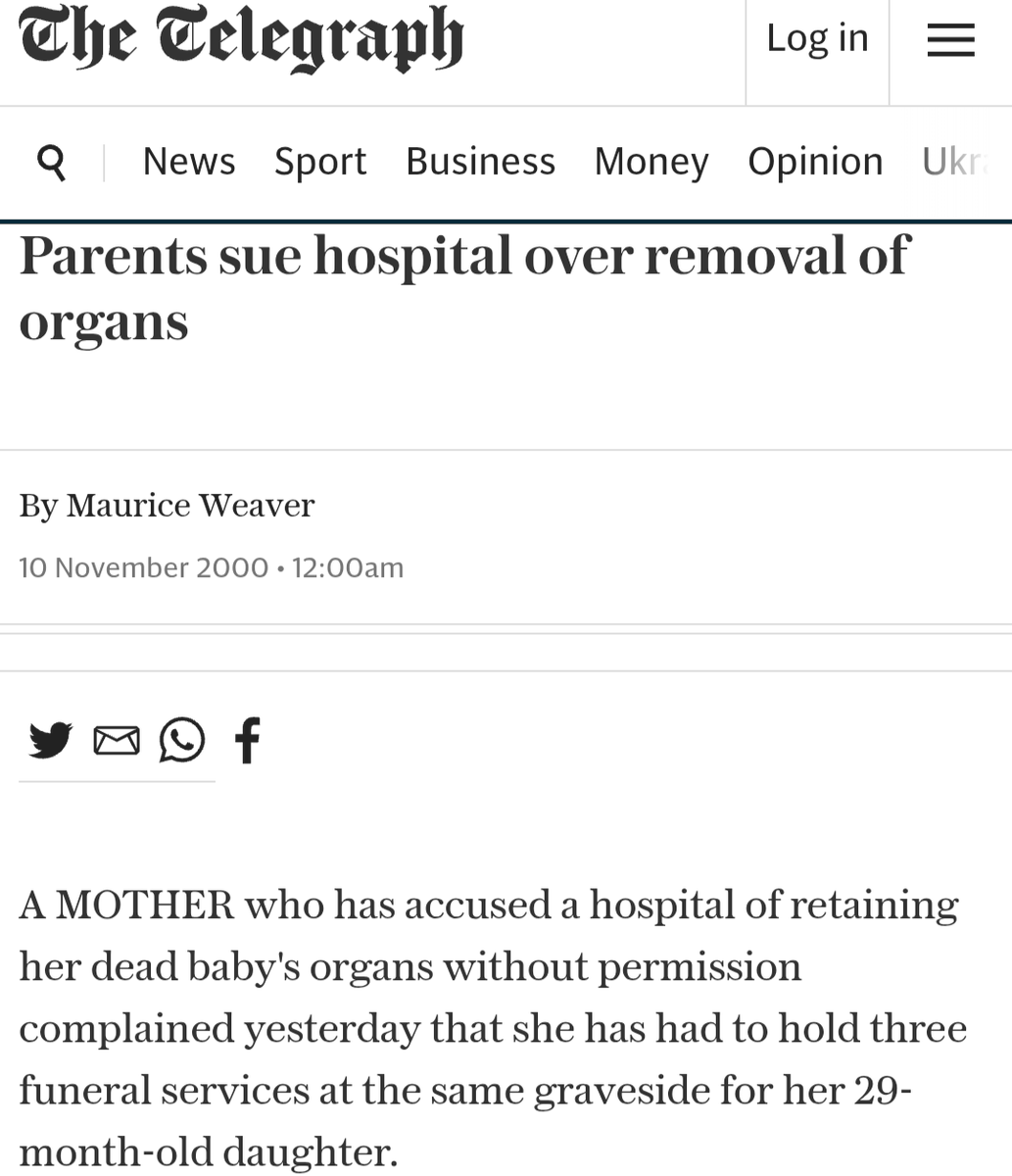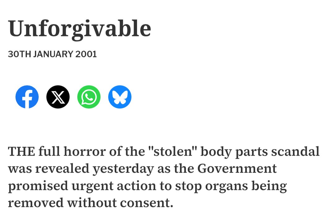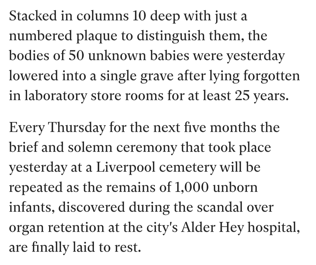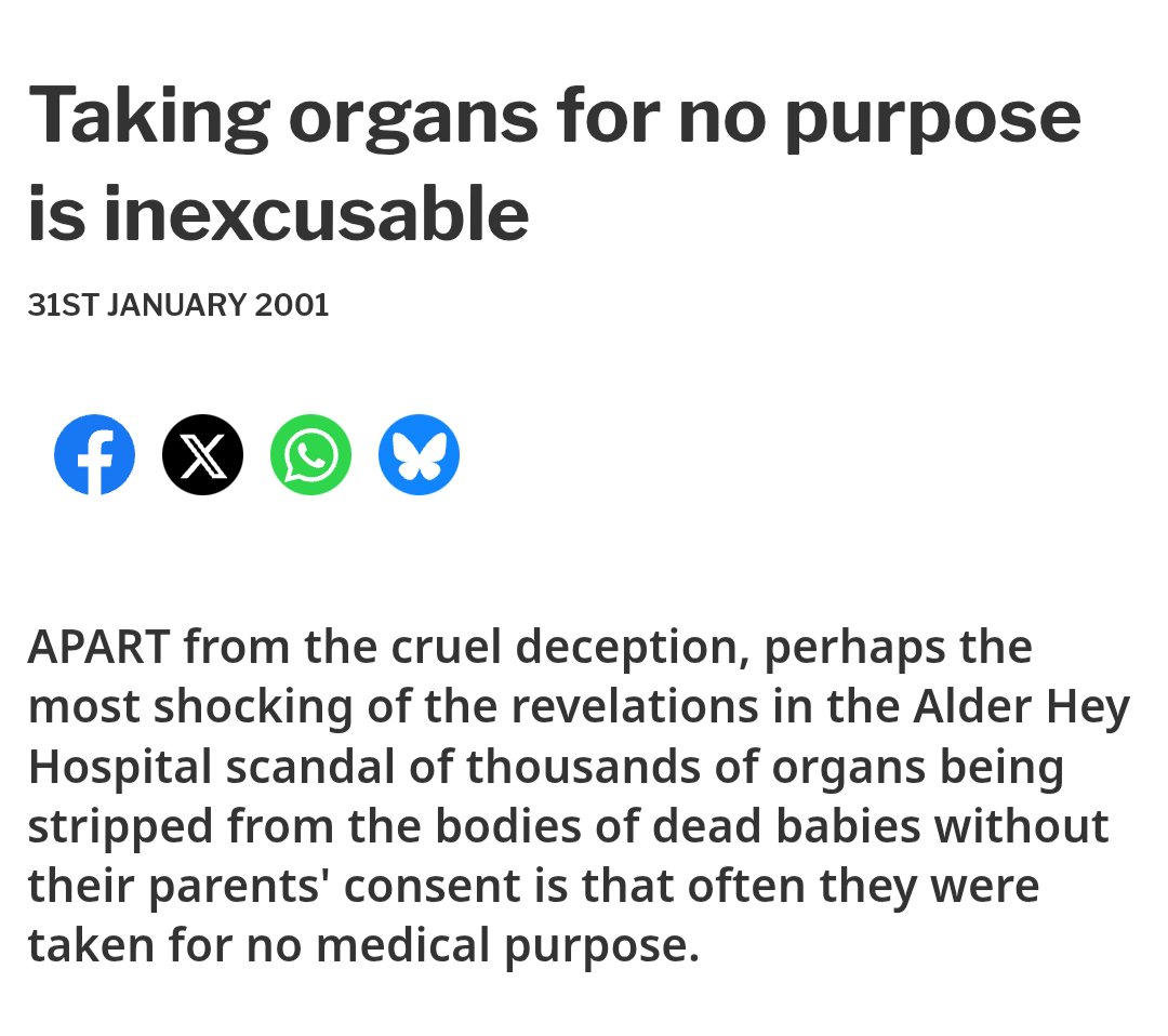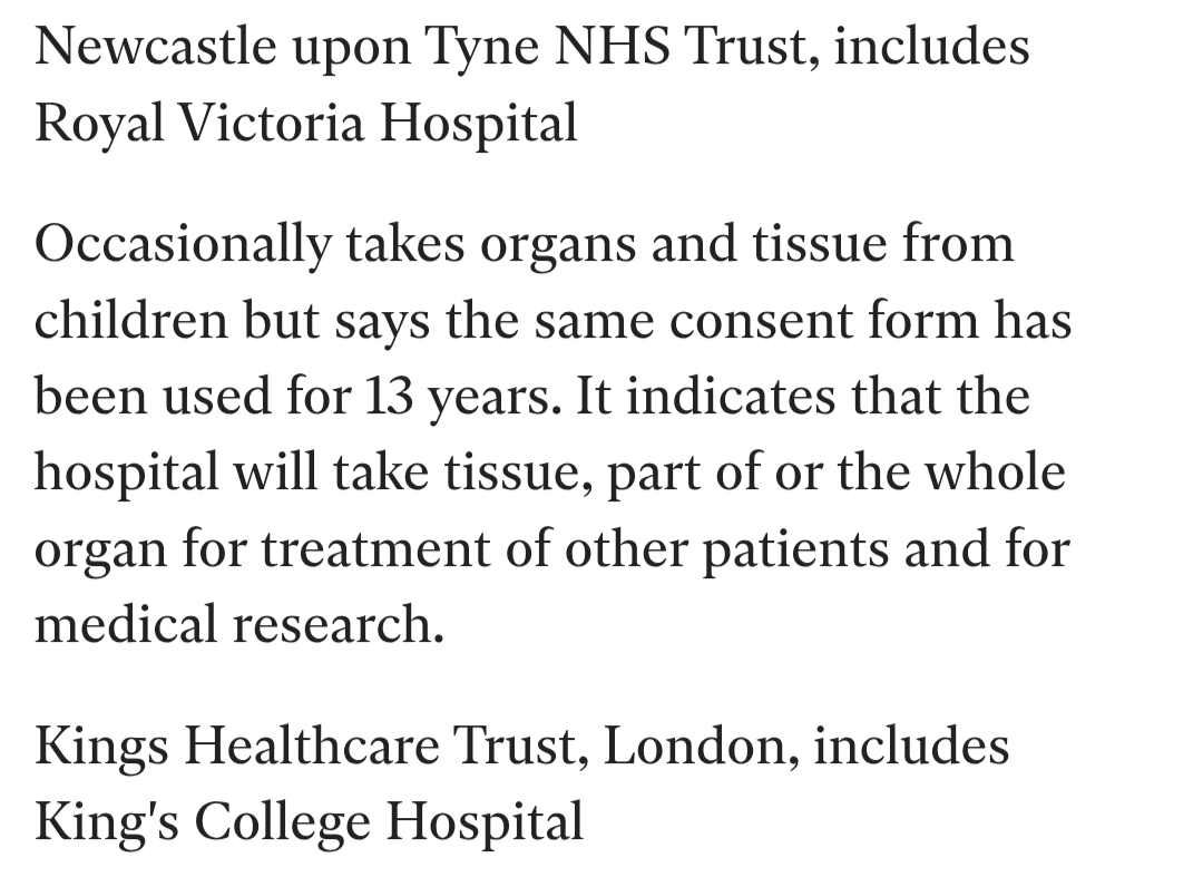 "Three children's hospitals had been harvesting hearts,lungs,brains & other organs from dead babies without their parents consent" theguardian.com/society/2001/j…