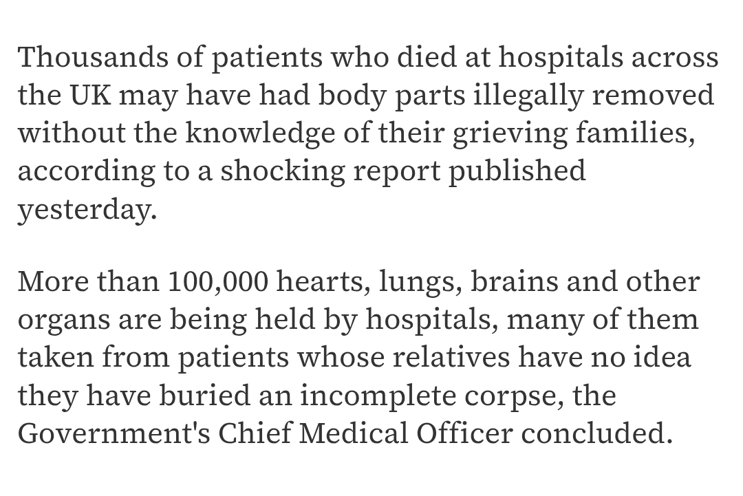 "More than half of Britain's major hospitals have removed organs from patients without clearly informing relatives".... telegraph.co.uk/news/uknews/13…