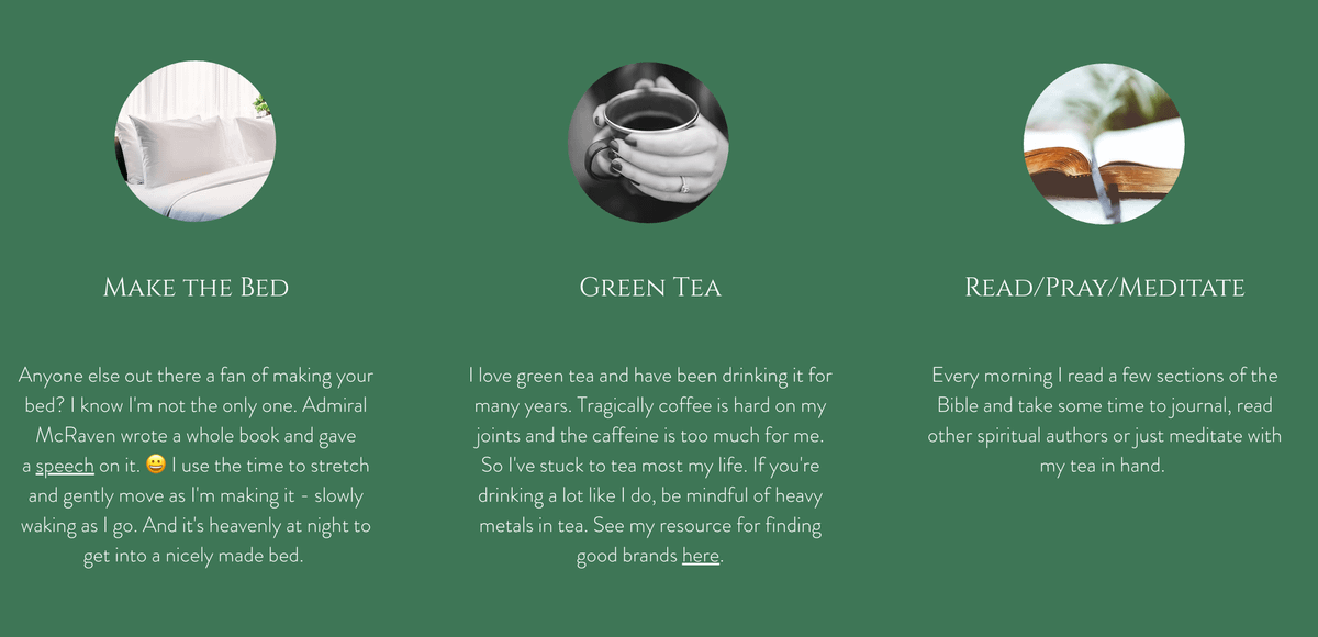 • Make the bed ritual (Admiral McRaven's philosophy in action)