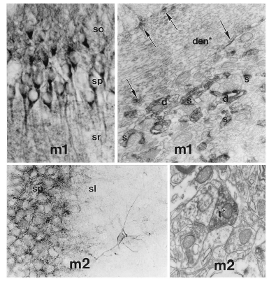 CHRM1 is predominantly expressed on postsynaptic pyramidal neurons in the cortex and hippocampus.