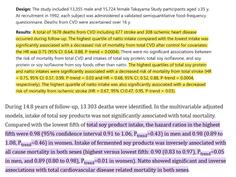 In a study of 92,000 adults, those who ate fermented soy had a 10% lower mortality rate.