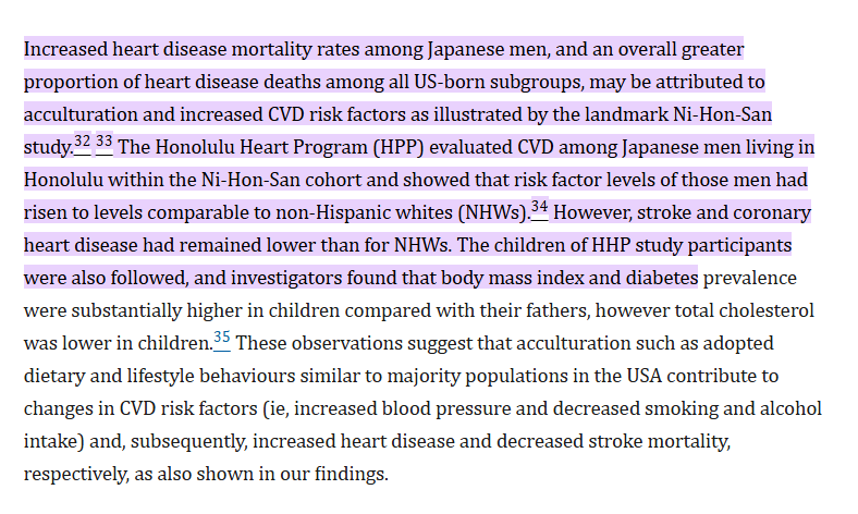 The Ni-Hon-San studies found that when Japanese people move to the US and adopt Western diets, their health advantage evaporates.