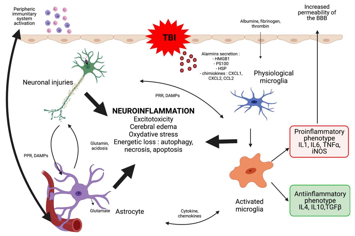 Traumatic brain injury causes the release of damaged cell parts, which triggers inflammation, which then increases oxidative stress.
